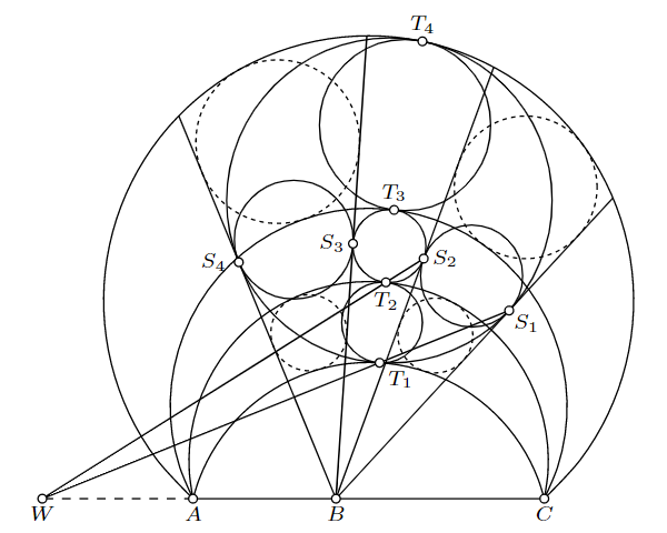 を適用でき、円$\Omega$と円弧$\delta_2$は接点$\Omega_4$をもつ。かくして題意が示された。$\blacksquare$