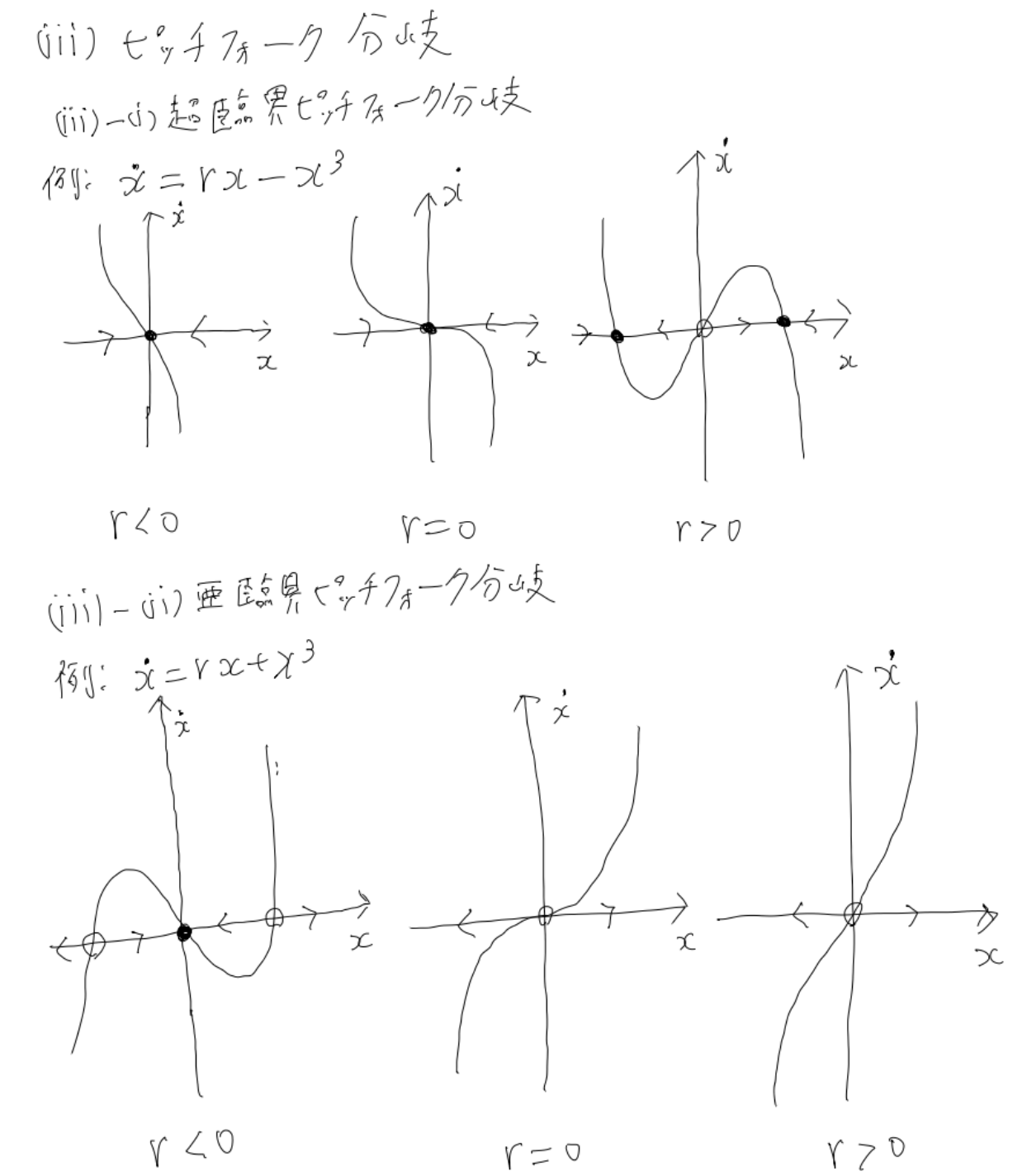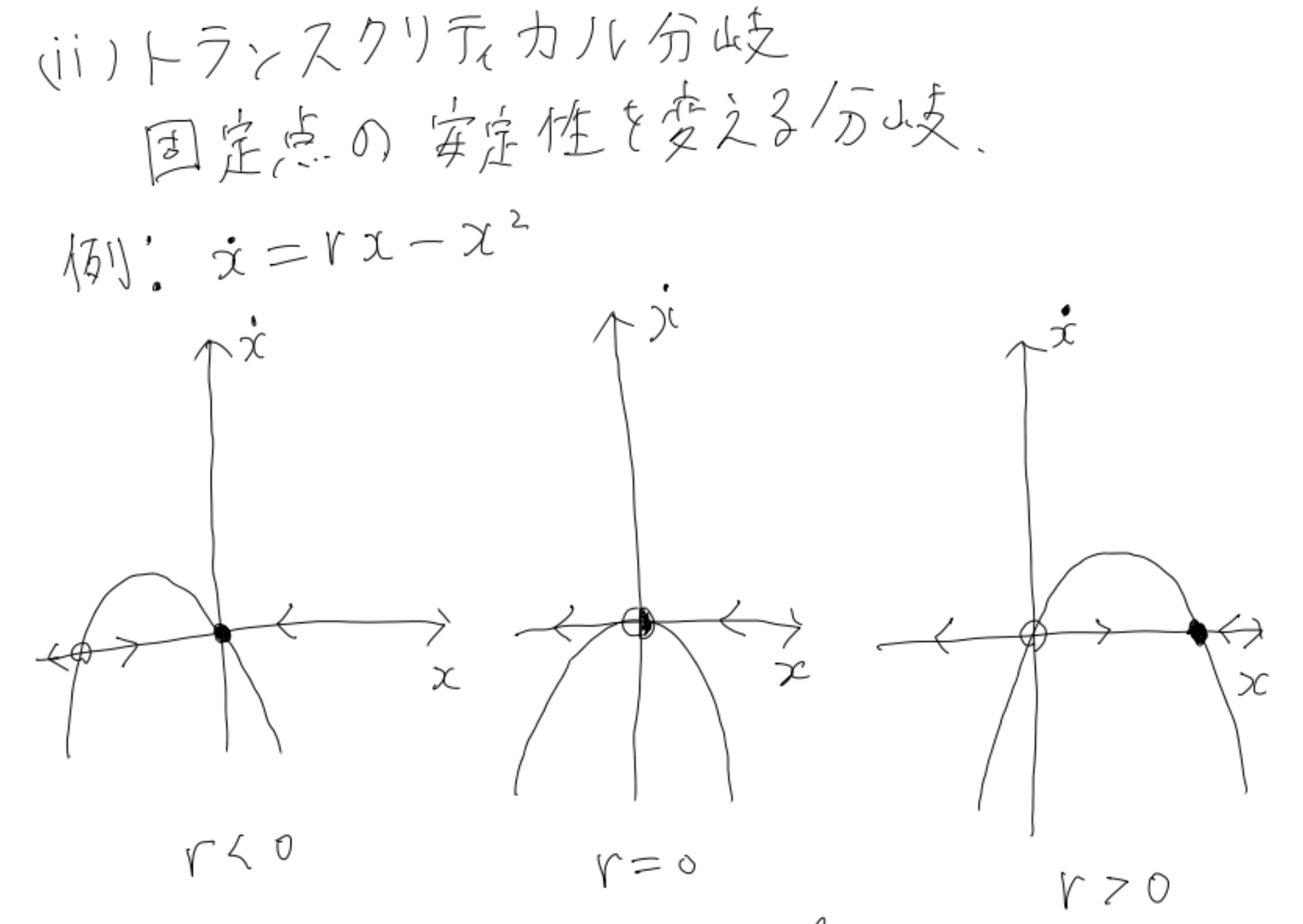 超臨界ピッチフォーク分岐なんかは、物理をやっている人だと相転移らへんで見たことがあるのではないでしょうか?