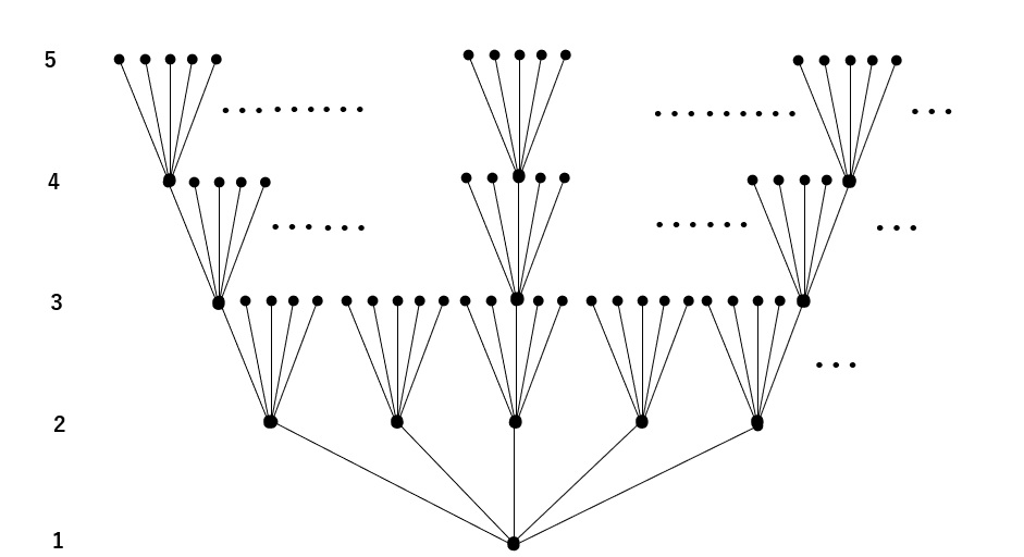 27のように、いつまでも1に到達しないかのように計算値自体は増えていくことがあろうとも、このツリー図においては、確実に一つずつ降りてきているわけです。