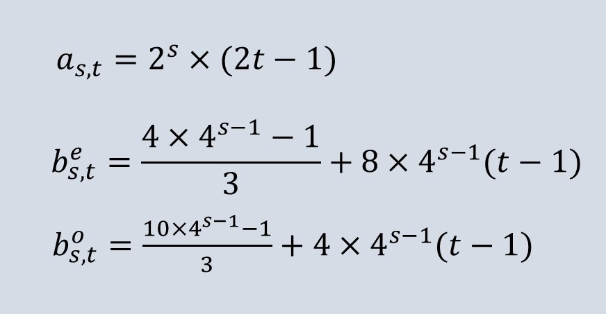 そこからは、奇数になるまで2で割る回数が偶数のときは6t-5、奇数のときは6t-1で次の奇数が参照できるわけです。
