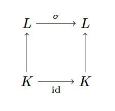 $L/K$:体の拡大, $\sigma$:$L$$\rightarrow$$L$:$L$の$K$上の自己同型写像