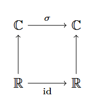 複素数体$\mathbb{C}$の複素共役(自己準同型写像)を$\sigma:\mathbb{C}\rightarrow\mathbb{C}$とおきます。