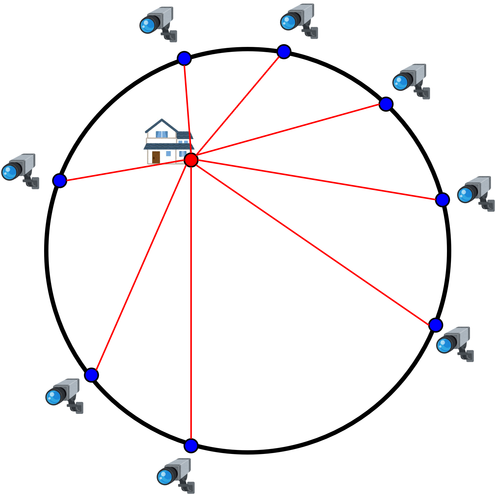 半径$1$の円形の村があります.村長は村の周囲(円周)に,有限個の監視カメラを設置する予定です.