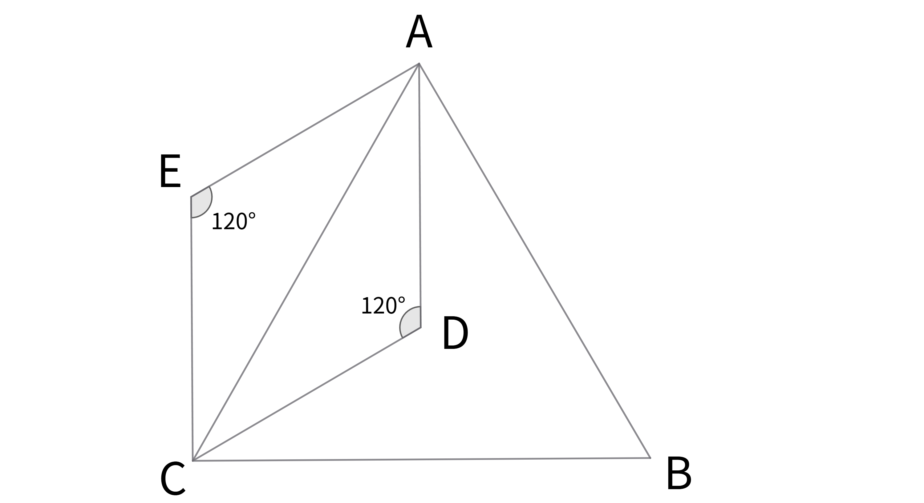 また、$\LARGE{∠ADC=120°かつ120°=∠CEA}$なので$\LARGE{⊿ADC}$と$\LARGE{⊿CEA}$は、$\LARGE{二辺の長さが等しく、その間の角も等しい}$ため、$\LARGE{合同な二等辺三角形}$であることが分かります。