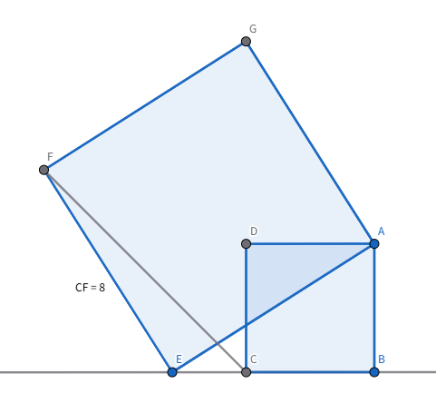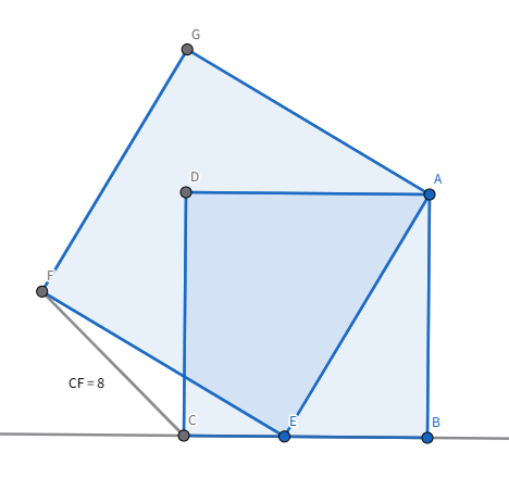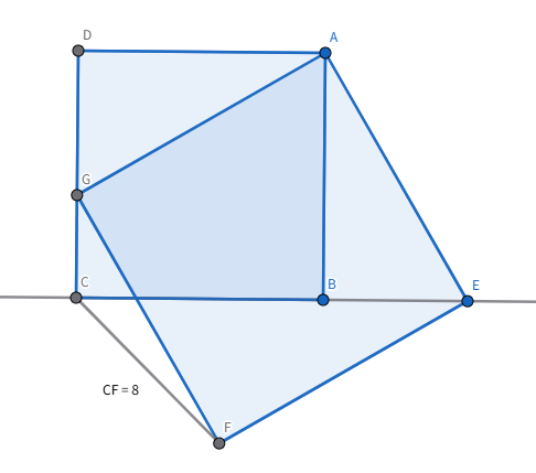 正方形$ABCD$について, 直線$BC$上に点$E$を点$B, C$と重ならないようにとり, 正方形$AEFG$を正方形$ABCD$と向きが同じになるようにとります. 線分$CF$の長さが$8$のとき, 正方形$ABCD$と正方形$AEFG$の面積の差として考えられる値の総和を求めてください.