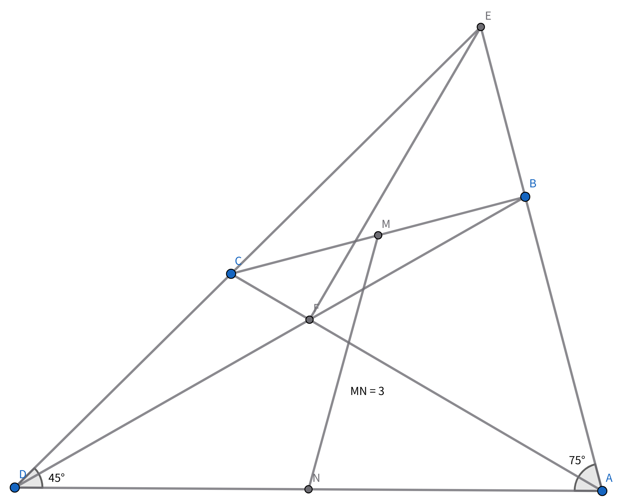 $$ \angle BAD=75°, \angle CDA=45°, MN=3 $$