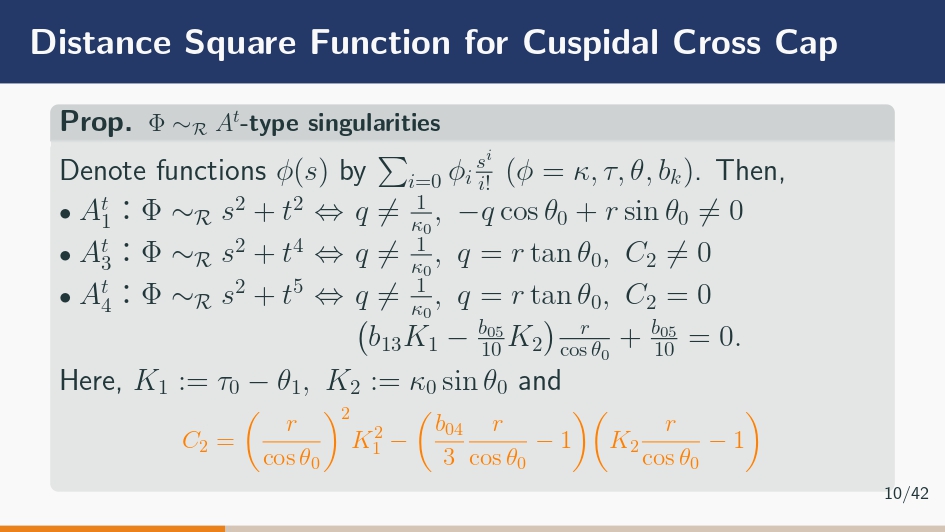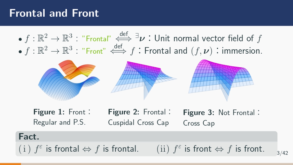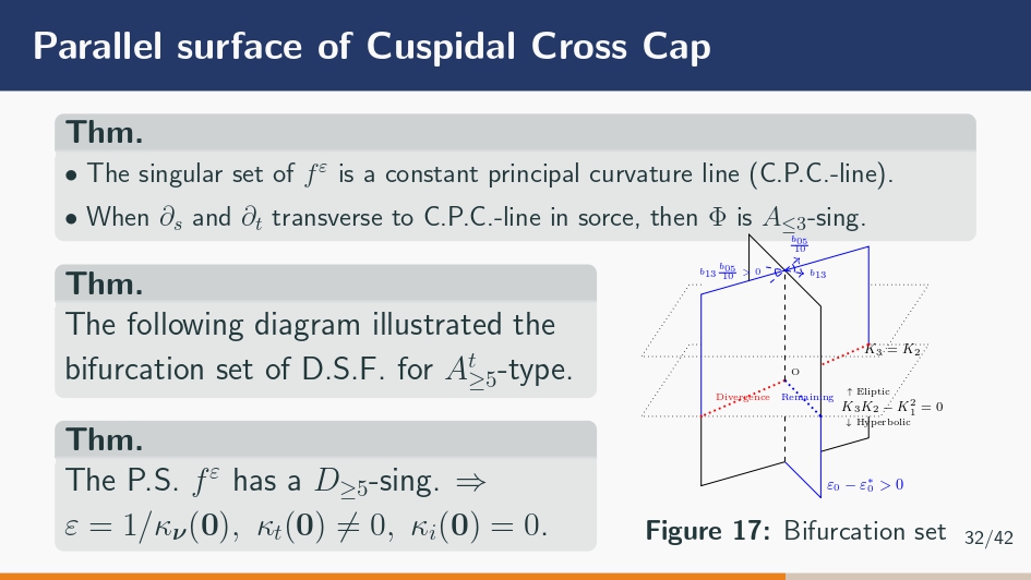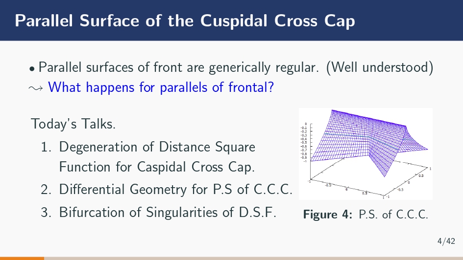 タイトルに関しては捻らず「Parallel Surface of Cuspidal Cross cap」。後述する理由でスライドを作るときは英語で統一しています。