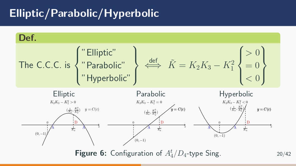 といった感じです。もちろんスライド描いてる間に順番を入れ替えたりもしていいです。実際2の判別集合と平行曲面の関係は最初に持っていきました。