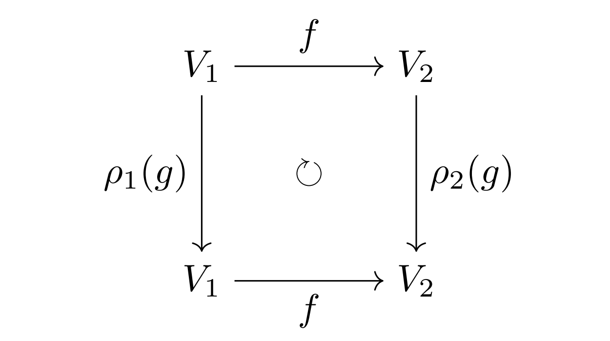 \forall g\in G,\ f\circ\rho_1(g)=\rho_2(g)\circ f \tag{a}
