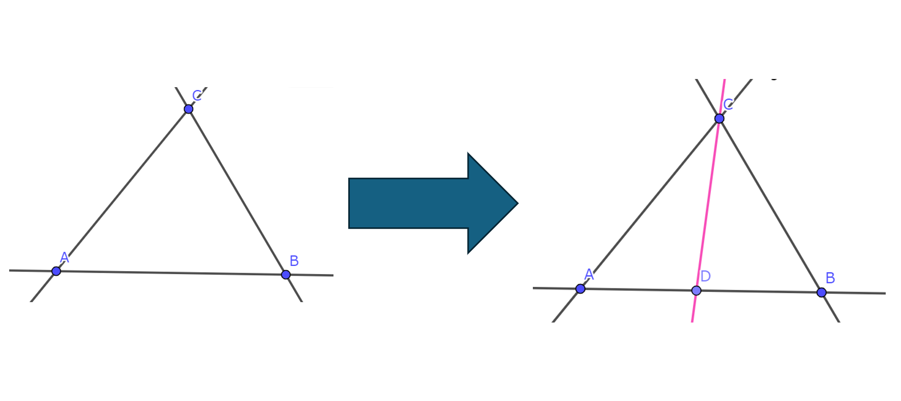 操作1:Menelausの定理が成り立つ図形を書く(線分を直線にする)