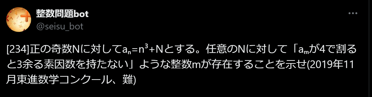 よって補題$1$から$x(t)(=(f(t))^2+(g(t))^2)$は$4$で割って$3$余る素因数を持たず