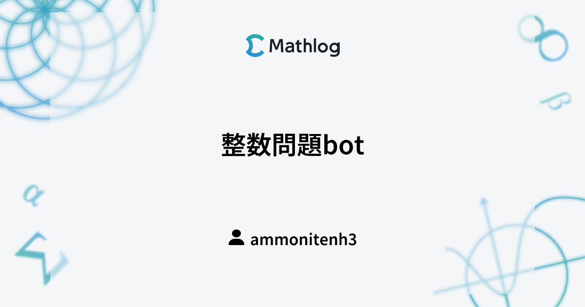 整数問題botを解いてみたシリーズです.ほぼ激易に限られると思います.